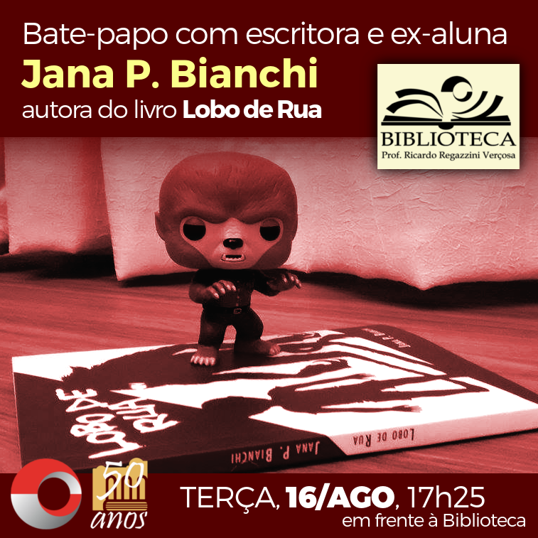 No próximo dia 16 de agosto, a ex-aluna de Alimentos Jana P. Bianchi, escritora, estará no colégio para um bate-papo em frente à Biblioteca do Cotuca. Jana falará de sua experiência como jovem escritora e de seu livro Lobo de Rua. O livro é uma novela de fantasia e encontra-se disponível em nossa Biblioteca. A atividade é organizada pela Biblioteca Prof. Ricardo Regazzini Verçosa e compõe a agenda de comemoração #Cotuca50Anos.