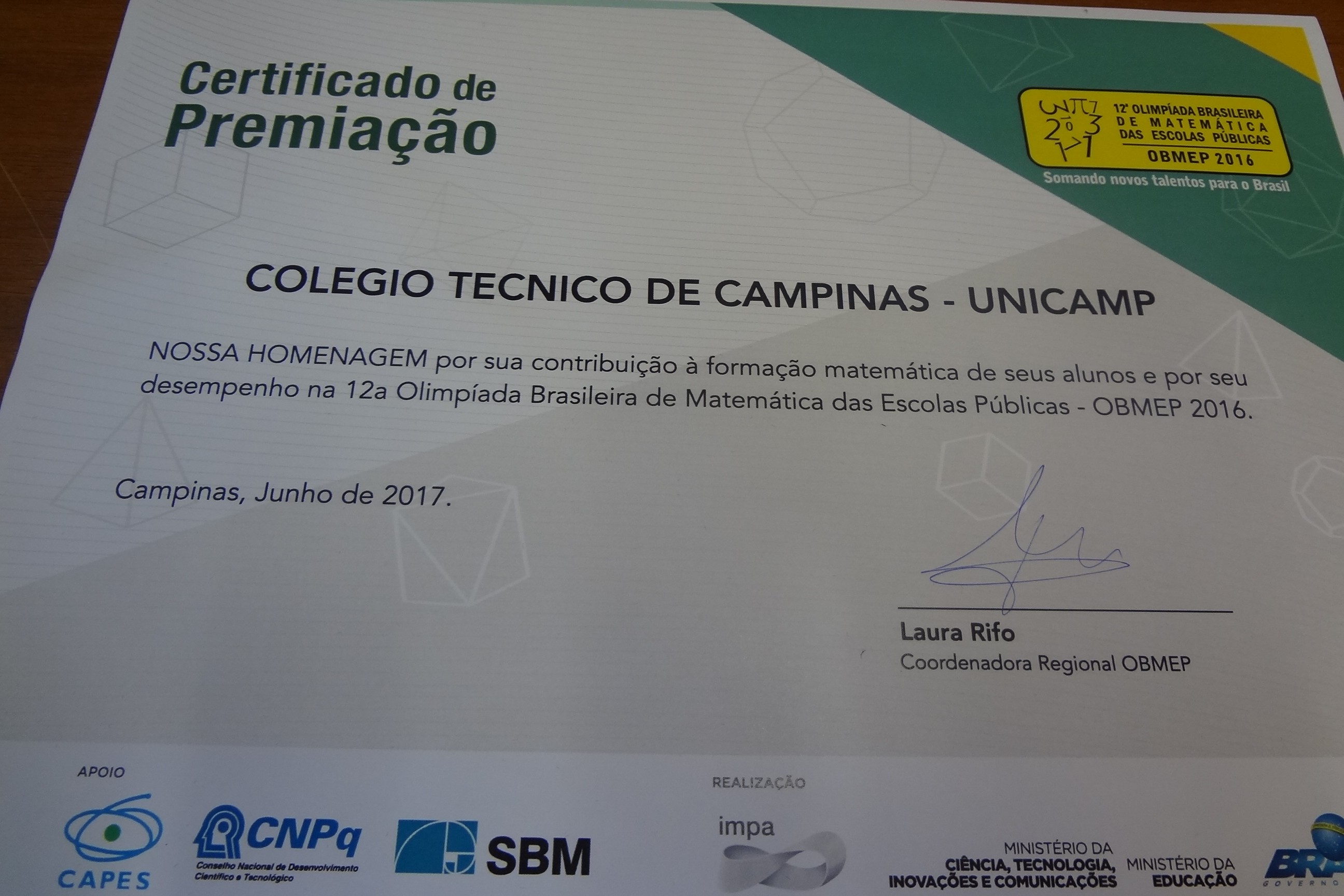 Além da cerimônia de premiação Nacional, ocorreu também em Junho passado a cerimônia de premiação regional da OBMEP 2016, no Centro de Convenções da Unicamp. Vários alunos do COTUCA estiveram presentes. Em 2016, o COTUCA teve 19 alunos premiados com medalhas de ouro, prata e bronze, resultado que fez com que o COTUCA também conquistasse um troféu, sendo uma das escolas de destaque na cerimônia. Segue abaixo a lista completa de alunos premiados: