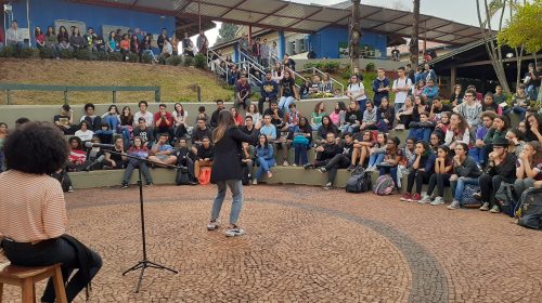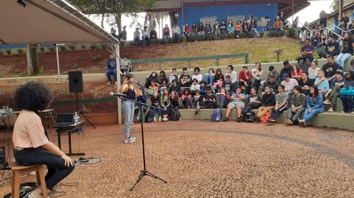 No período vespertino contamos com a apresentação de uma palestra musicada conduzida pela Doutoranda em Filosofia da USP Jéssica Omena Valmorbida e acompanhada pela presença da cantora e compositora Giovanna Machado, com a tema: Direitos Humanos: lutas por reconhecimento.