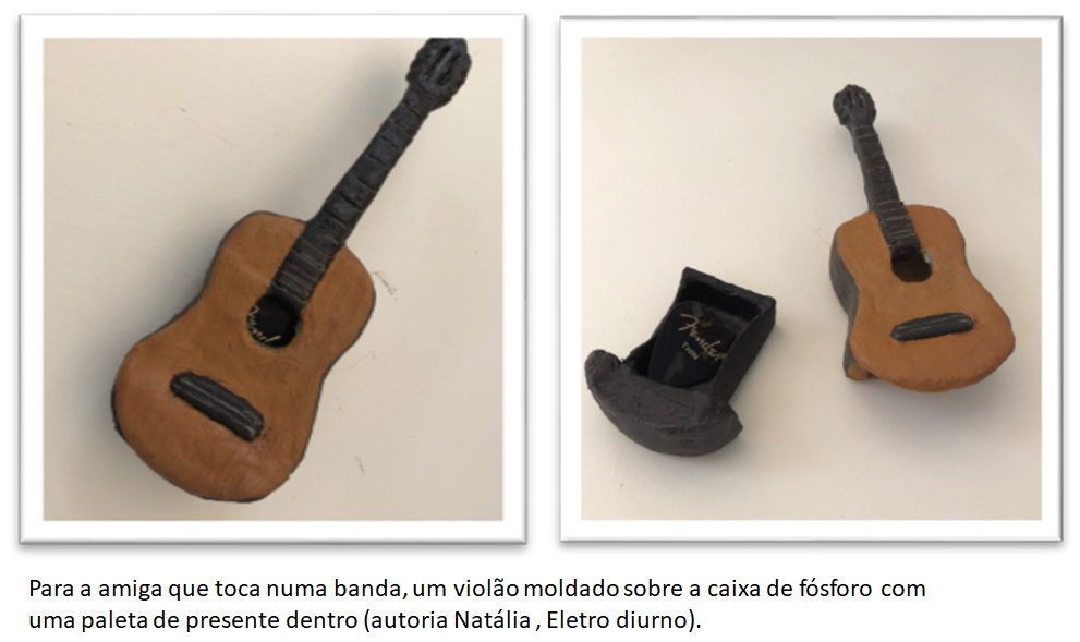 Inicialmente as professoras apresentaram O poema “Eu, etiqueta”, de 1984, de Carlos Drummond de Andrade, para discutir com os alunos a ideia da produção artesanal em contraponto ao consumismo e a ditadura das grandes corporações e marcas. Depois apresentaram um inventário de obras cuja base fosse a caixa de fósforo em si, caixa sou similares de diferentes formatos. Ou seja, um suporte que revelasse algo ao ser aberto (como a caixa de Pandora). “Foi assim que chegamos nas caixas de Duchamp, do Grupo Fluxus, de Cildo Meireles, na valise e marmita de Carlos Zílio e no já citado projeto Estruturas de caixas de fósforo, de Lygia Clarck”.