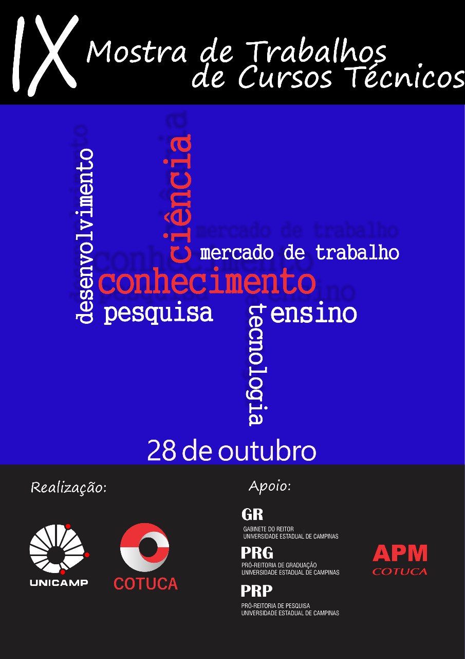 No próximo dia 28 de outubro acontece, em formato remoto, a IX Mostra de Trabalhos de Cursos Técnicos do Cotuca.