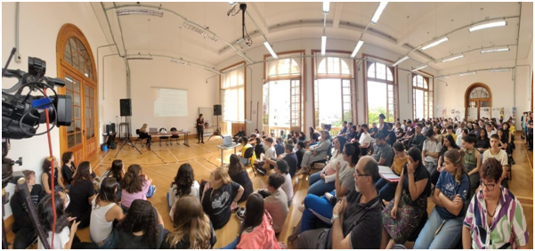 Dentre as diversas ações que o Colégio Técnico da Unicamp vem realizando diante dos recentes episódios de violência nas escolas, contamos, na manhã do dia 14/04, com a presença de nossos alunos, docentes e funcionários na palestra “Apoio à segurança: sistemas e práticas”, proferida pelas professoras Susana Durão e Telma Vinha no Salão Nobre do Cotuca.