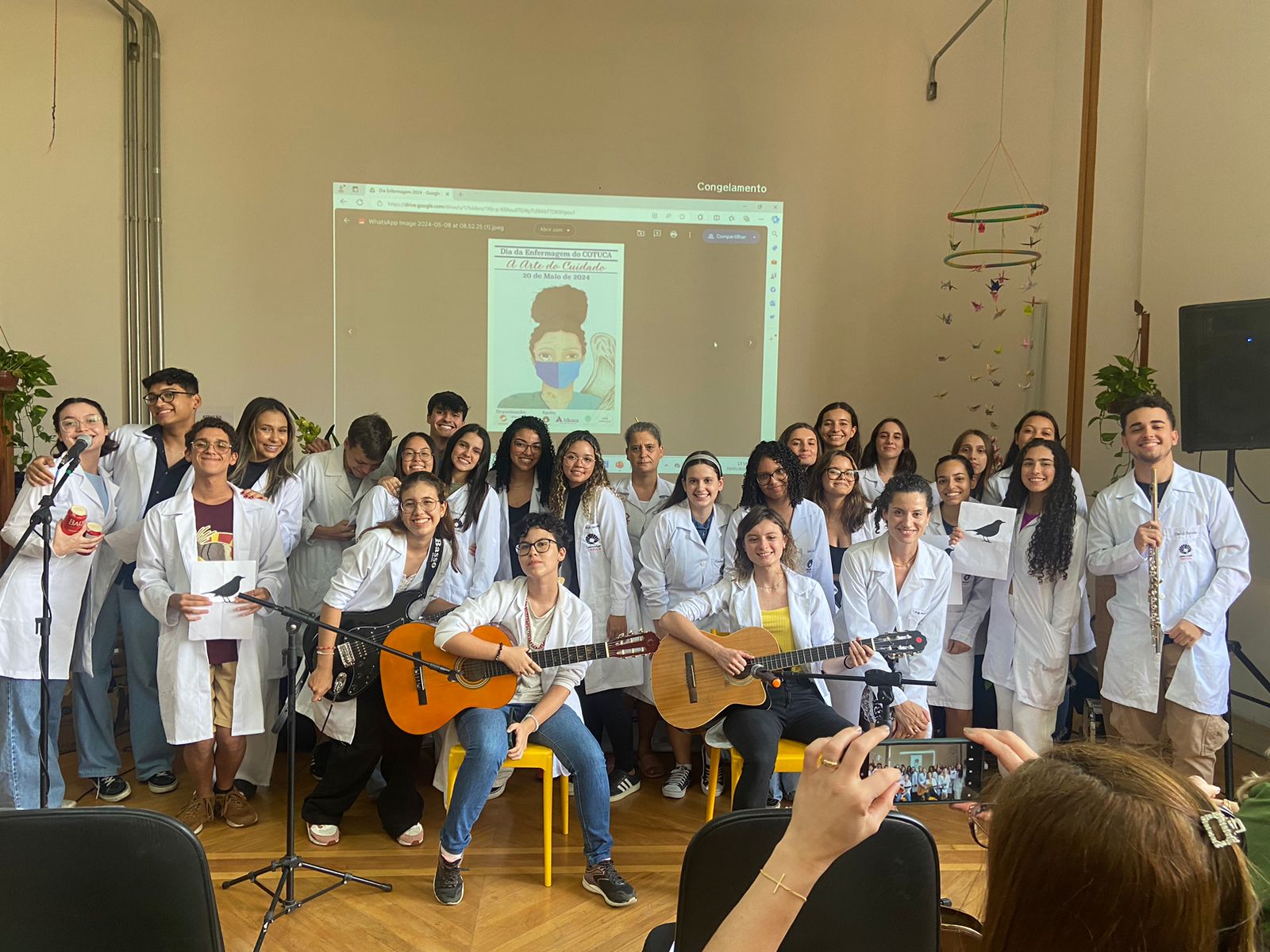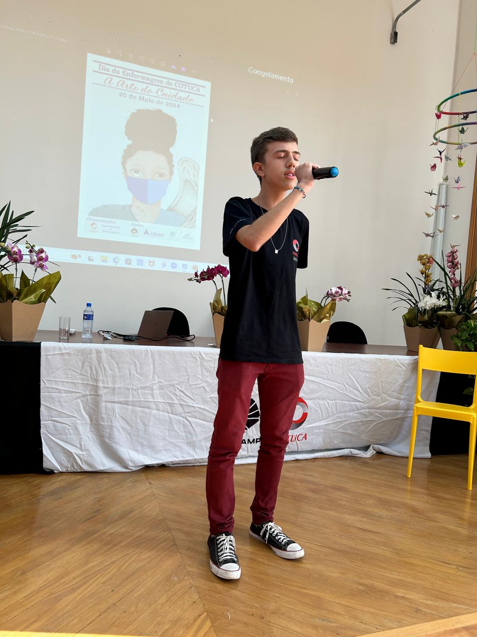 No dia 20 de maio de 2024, comemoramos no Cotuca, o Dia da Enfermagem, e o Dia do Técnico de Enfermagem. O tema do evento foi “A Arte do Cuidado”, e foi muito rico científica e artisticamente. Contou com a presença da Profa. Dra. Maria Júlia Paes da Silva, da USP – SP, da Profa Dra. Ariane Polidoro Dini, da Faculdade de Enfermagem da UNICAMP e dos Ex-alunos Enfa. Bruna Isa Crispim Correa, doula e consultora de amamentação e do Técnico de Enf. Vinícius Braga, da UER, UNICAMP. Houve também participações artísticas brilhantes dos alunos Amanda Silva Morais, do terceiro ano; Thierry Alexandre da Silva, do primeiro ano e do Coral de alunos junto com a Profa. Simone. A vencedora do concurso de desenho foi a aluna Marianne Domingues.
