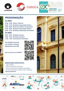 Quem pode participar: O Cotuca Arduino Days 2025 é aberto a todos os interessados em tecnologia, desde iniciantes até profissionais experientes. Se você tem curiosidade sobre Arduino ou já é um expert na área, este evento é para você! Basta se inscrever até o dia 18/03 no seguinte link: